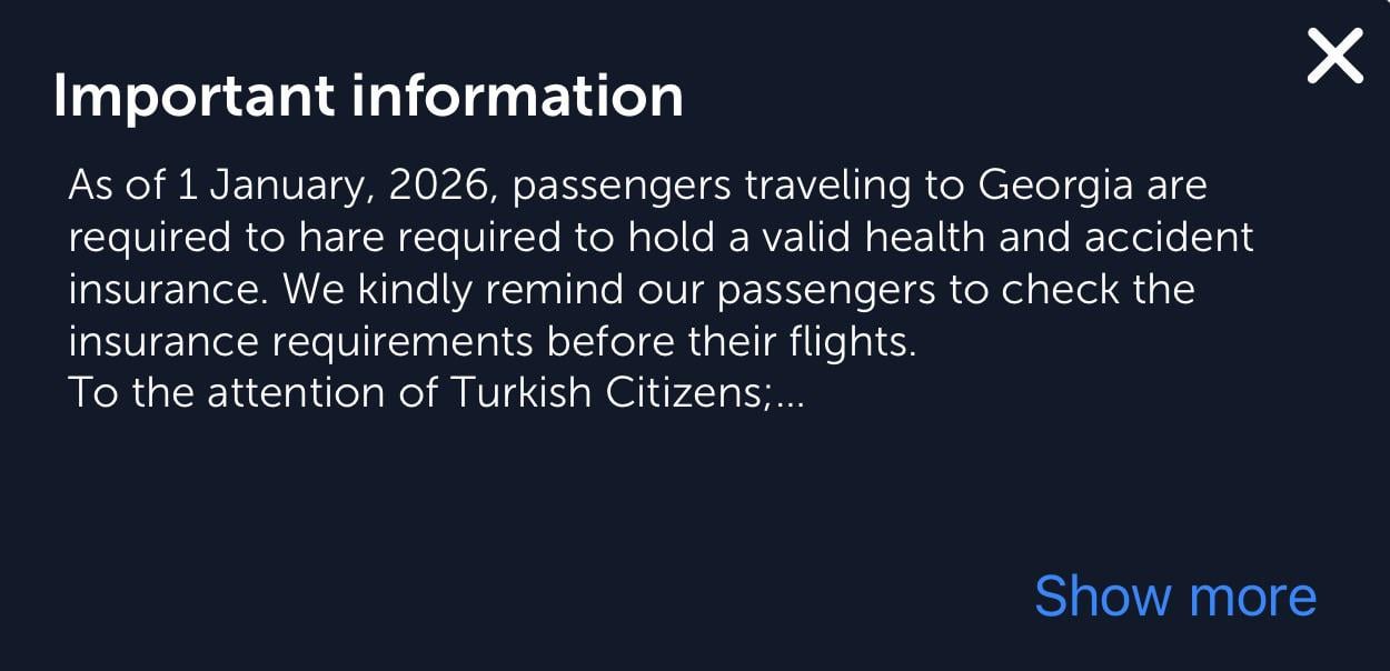 Quando prenoto un volo tramite Turkish Airlines ricevo tale notifica. Qualcuno di voi che ha già viaggiato in Georgia nel 2026: è accettata l’assicurazione della carta di credito Revolut?