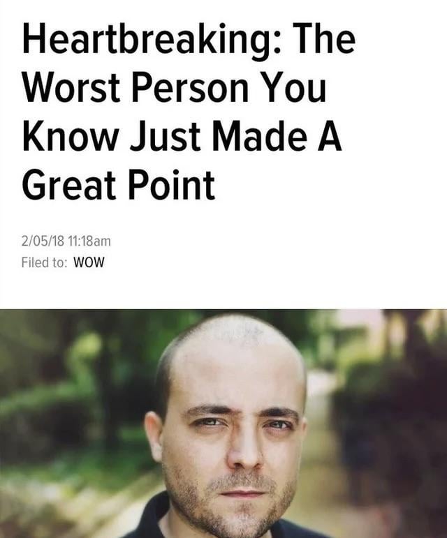 Or the worst person you know made a great joke that made everyone cry from laughter.
