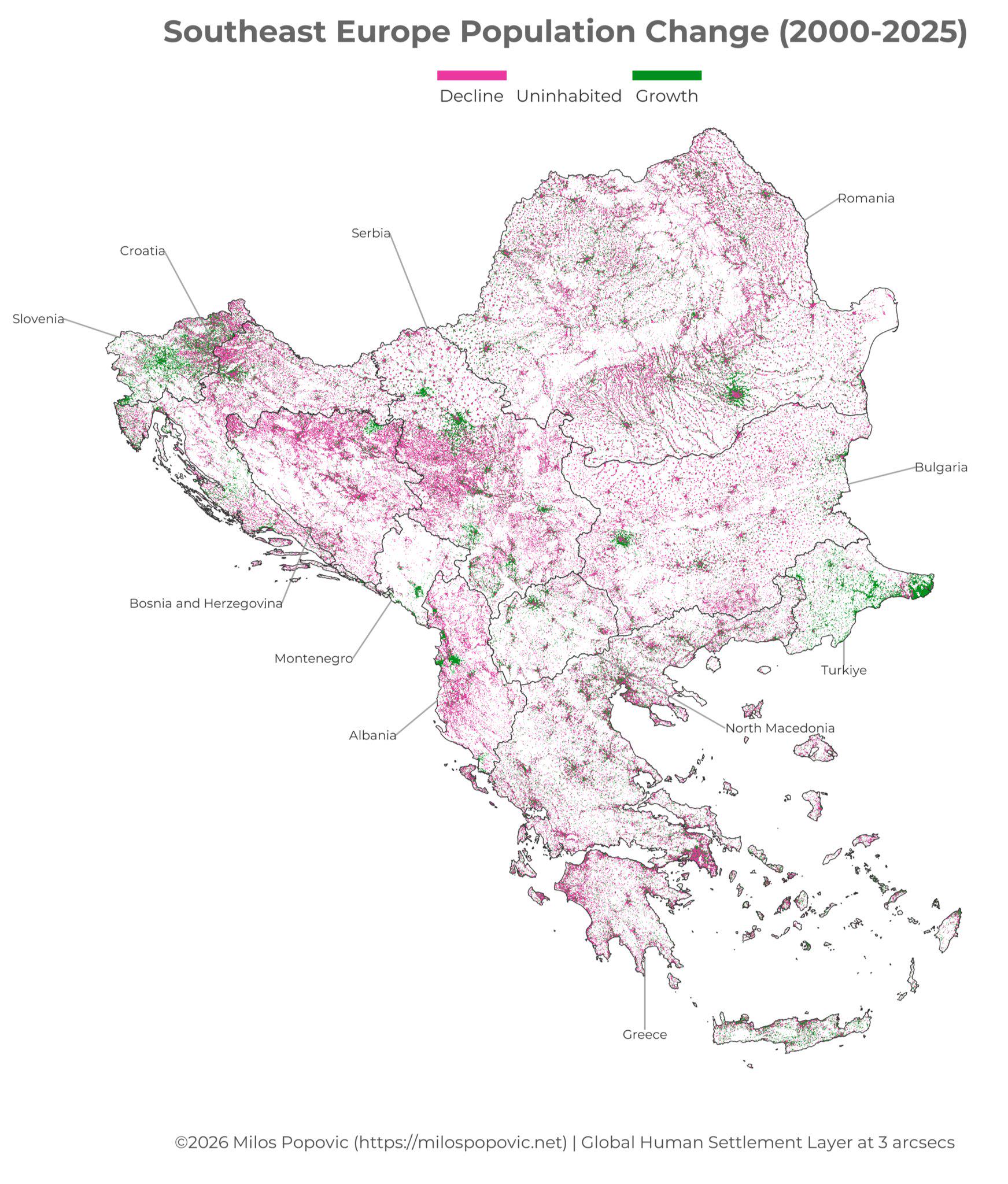 Večina redukcije ni zaradi izseljevanja pač pa zaradi negativnega naravnega prirastka. Balkan ima najvišjo smrtnost na svetu in tudi določene demografsko mlajše države od Slovenije (Črna Gora, Makedonija) imajo višjo stopnjo smrtnosti kot mi.
