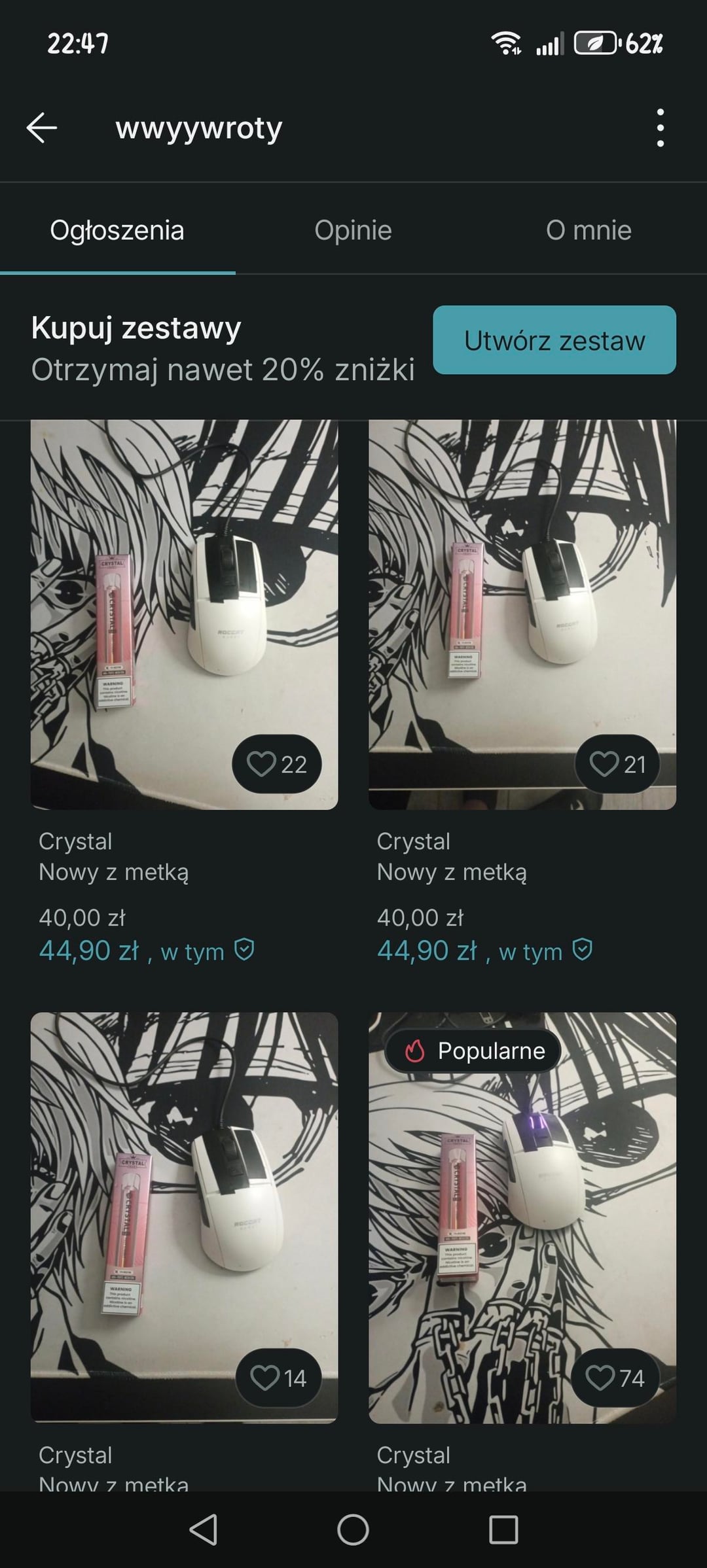 Da qualche tempo vedo sempre più pubblicità che fingono di essere prodotti elettronici, ma in realtà vendono sigarette elettroniche e altri prodotti a base di nicotina. È scioccato. Ho già segnalato 6 annunci di questo tipo, ma le macchine non riescono a fare nulla per come è costruito il sistema (perché il prodotto è visibile nella foto e nella descrizione sono scritti solo i dati di contatto). È da ieri che provo a contattare una persona dell’assistenza, ma non ho ancora ricevuto risposta. Cos’altro si può fare qui? Questo è illegale secondo la legge polacca!
