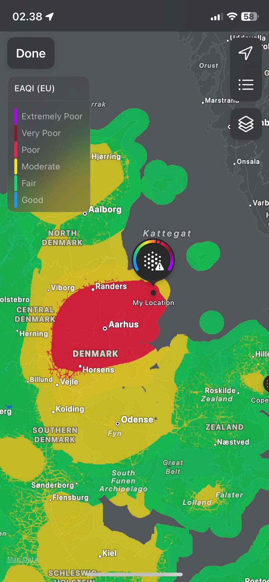 Sono andato sull’app meteo per controllare il tempo e diceva semplicemente “Scarsa qualità dell’aria” o qualcosa del genere e si è diffuso, ho controllato 1 ora fa o qualcosa del genere e sembrava brutto ma ancora non così.