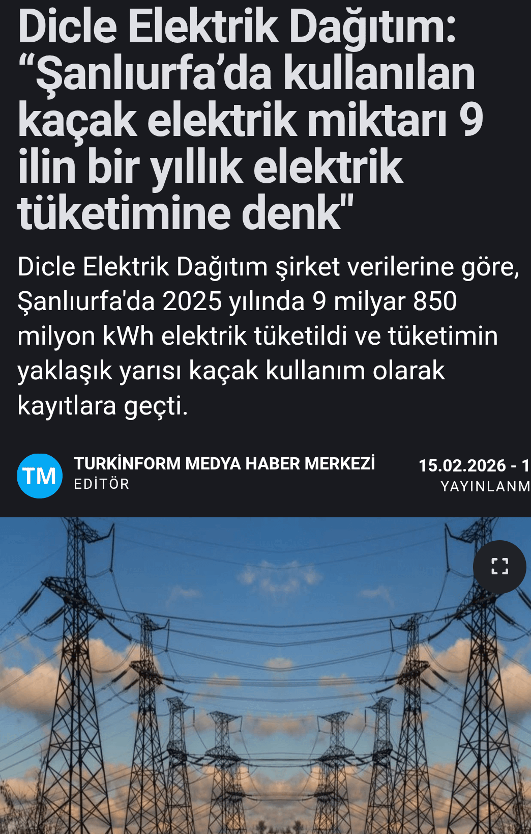 La metà dell’elettricità utilizzata a Şanlıurfa è illegale e questa quantità corrisponde al consumo annuale di elettricità di 9 province.
