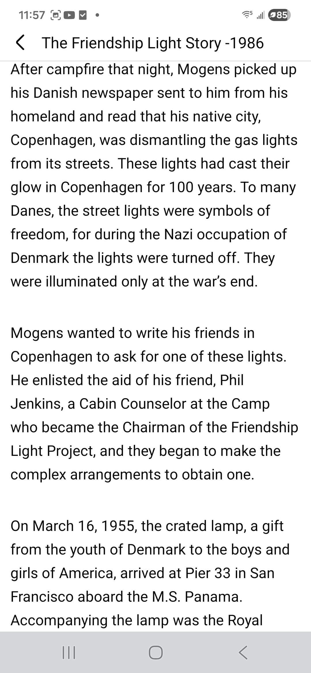 Come dono reciproco alla città di Copenaghen, il campo ha inviato "Due tonnellate di amicizia": una fetta di albero di Sequoia Gigante della proprietà. Il campo ha un’altra fetta esposta in ufficio, ma non sono riuscito a farne una foto, quindi ho incluso immagini simili per rinfrescare i ricordi.
