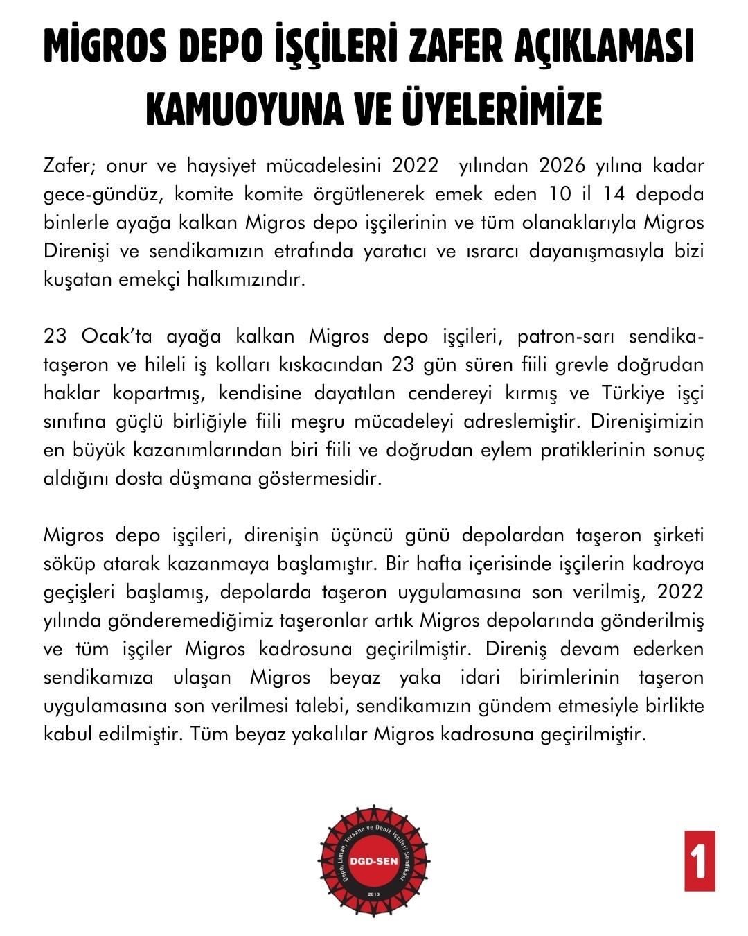 Piyasada bir grev gerçekleşmesi ve başarılı olması kendi içinde bir devrimdir. Nice zaferlerin başlangıcı olur umarım. Bir de şu AKP işini halledebilirsek CHP’nin başlatacağı sendikalaşma kampanyası bu zaferleri günlük kılacaktır bize. Gerçek gelir artışının tek yolu budur, diğer türlü sermaye bütün verimlilik artışlarını midesine indirecektir.