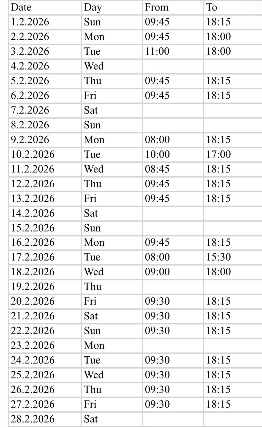 sa mas ja od 5:50 do 18:30 🙂 11 dni v kuse