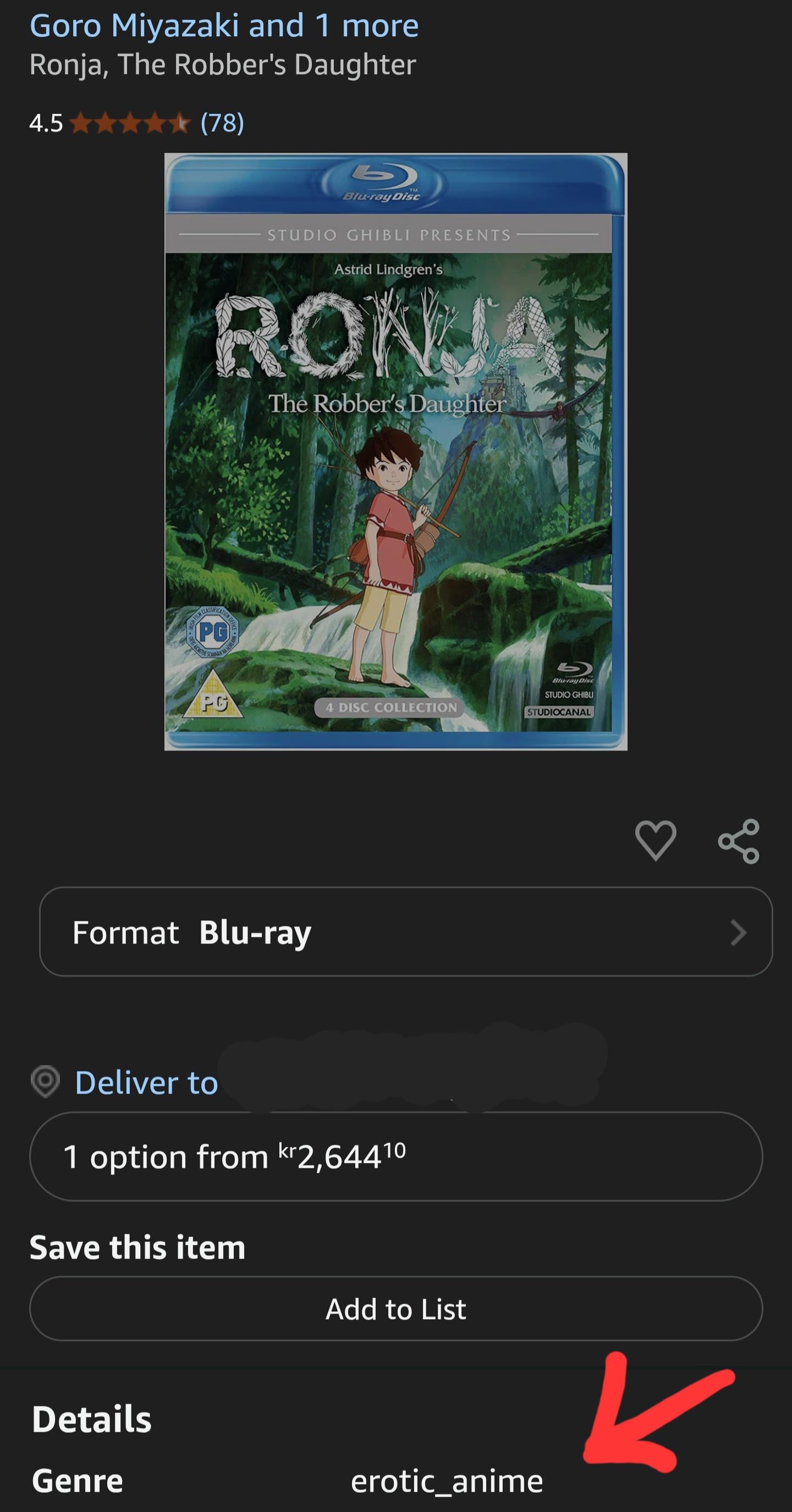 Ho pensato di mostrare ai bambini l’interpretazione di Ronja Rövardotter dello Studio Ghibli. Amazon mi fa pensare. https://i.redd.it/5jeg8cyxntjg1.jpeg di Quenya92