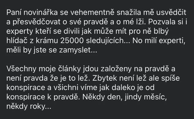 “není to lež, ale spíše konspirace a všichni víme, jak daleko je od konspirace k pravdě”
