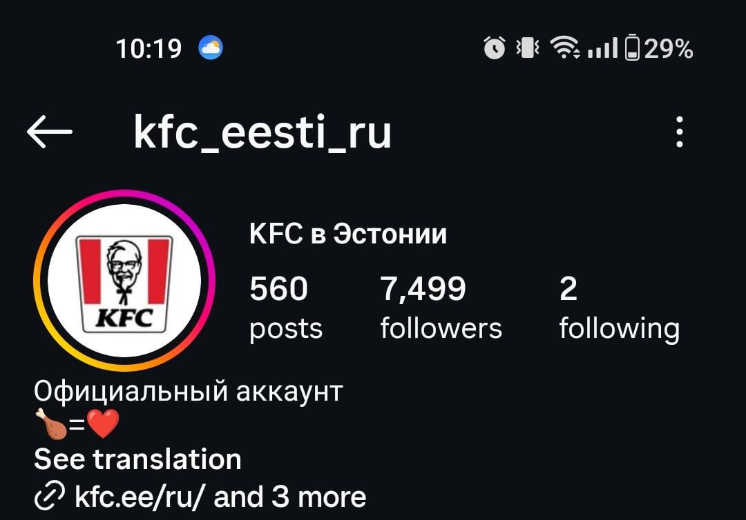 KFC vene teenindajad on põnevad. Ootasin 30 minutit oma sööki (kiirtoitu!). Läksin küsima, kus mu söök on. Vastus: “Jalaga läheb kauem kui kanaga.” Olin tellinud kanakoibi.