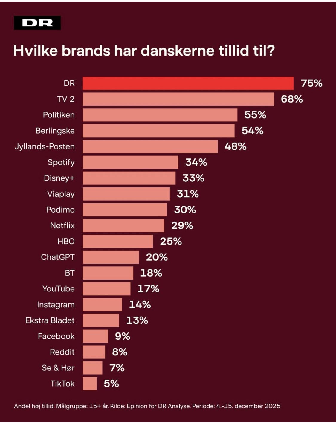 Nu er det jo “brands” de spørger om, det er jo ikke det samme om man har tiltro til DR’s nyheds redaktion – mere om koncernen som er Danmarks Radio.
