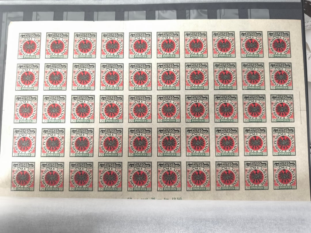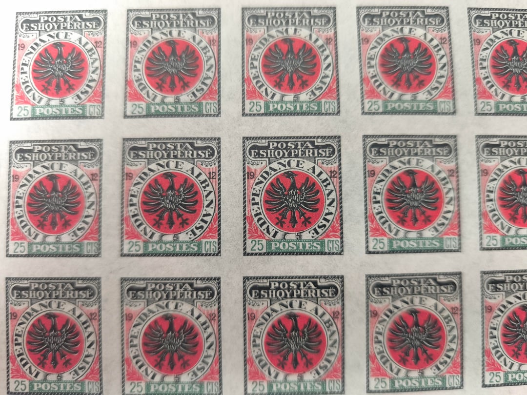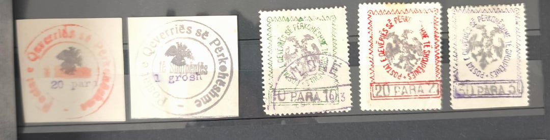 A causa di questo errore, invece di avere un massimo di due serie di francobolli improvvisati, le autorità postali albanesi furono costrette ad emettere le prime cinque serie di francobolli albanesi come francobolli stampati su pezzi di carta (esempio Foto 4), o ad utilizzare francobolli ottomani con francobolli albanesi impressi sopra (foto 5), finché non arrivò la prima serie autentica di francobolli albanesi dall’Europa.