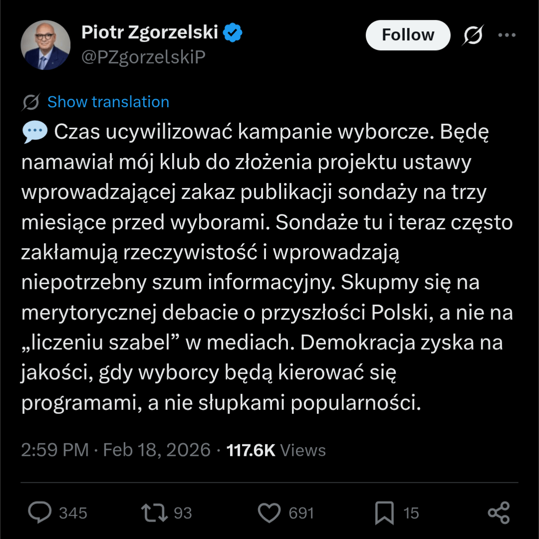 ja bym wolał żeby sondaże były jedynie dostępne na mniej niż 3 miesiące przed wyborami.