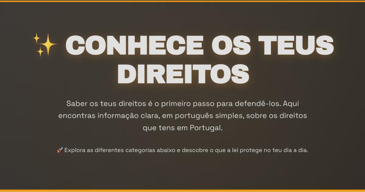 Si chiama Conosci i tuoi diritti ed è una piattaforma semplice che spiega i diritti quotidiani in Portogallo in modo chiaro e accessibile. L’idea è quella di rendere le informazioni giuridiche più comprensibili per i giovani, gli studenti e le famiglie. Nessuna opinione politica, solo spiegazioni pratiche su cosa dice la legge e come si applica nella vita reale.