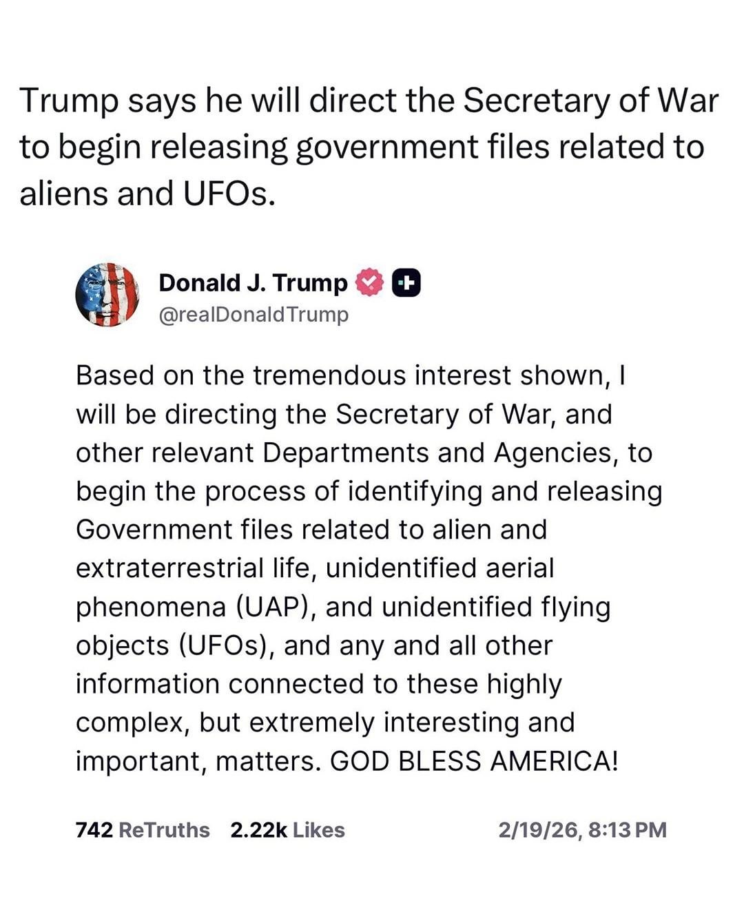 La rivelazione finale dovrebbe avvenire a luglio in una riunione dell’ONU, dove Trump presenterà al mondo che non siamo soli nello spazio.