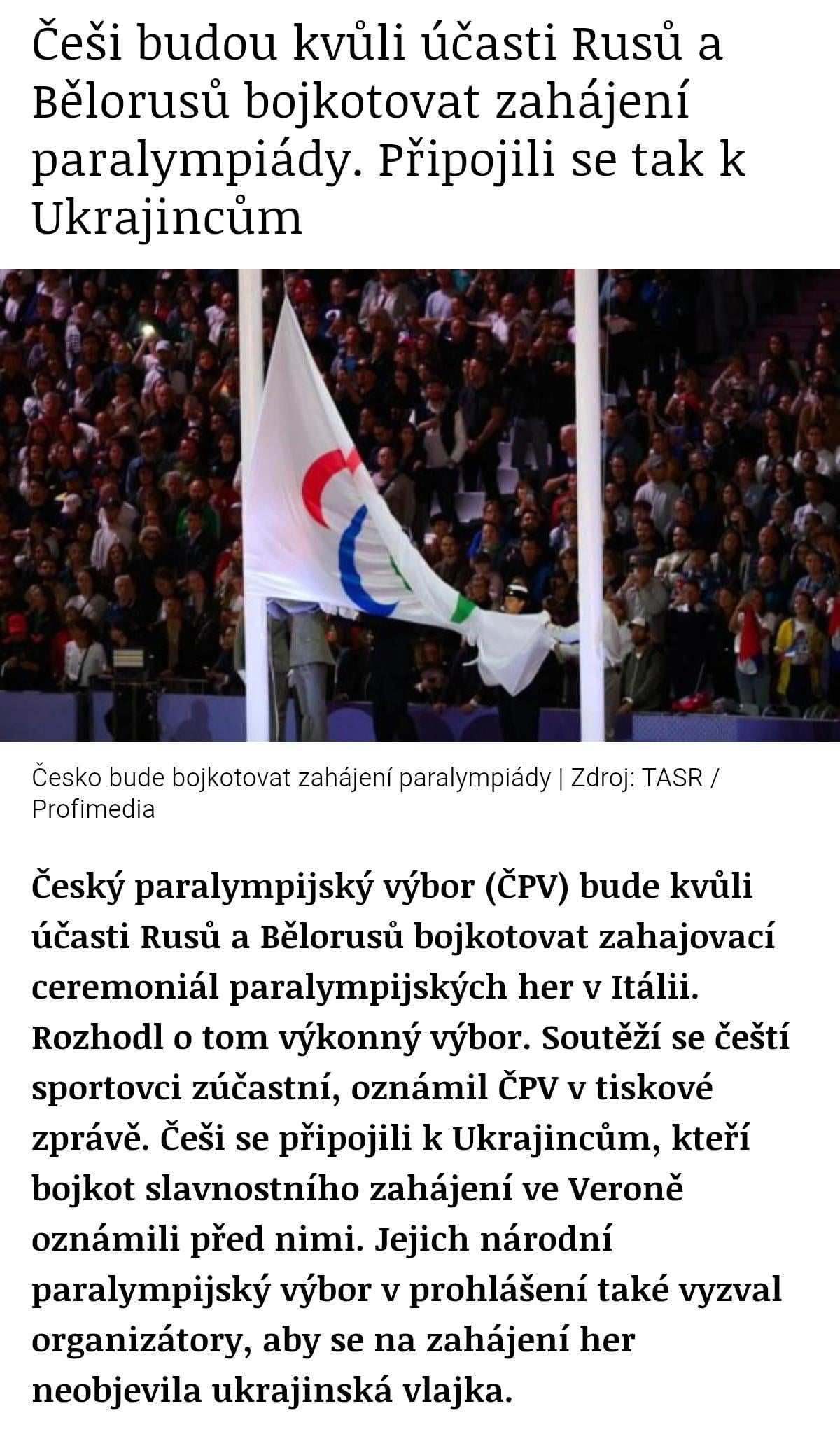 Jsem rád že Češi jsou proti Rusku, ale paralympiádu samotnou bych je asi nechal