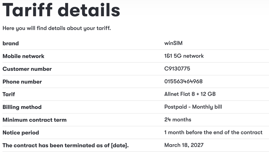„The contract has been terminated as of: March 18, 2027“ they will charge you for further 13 months