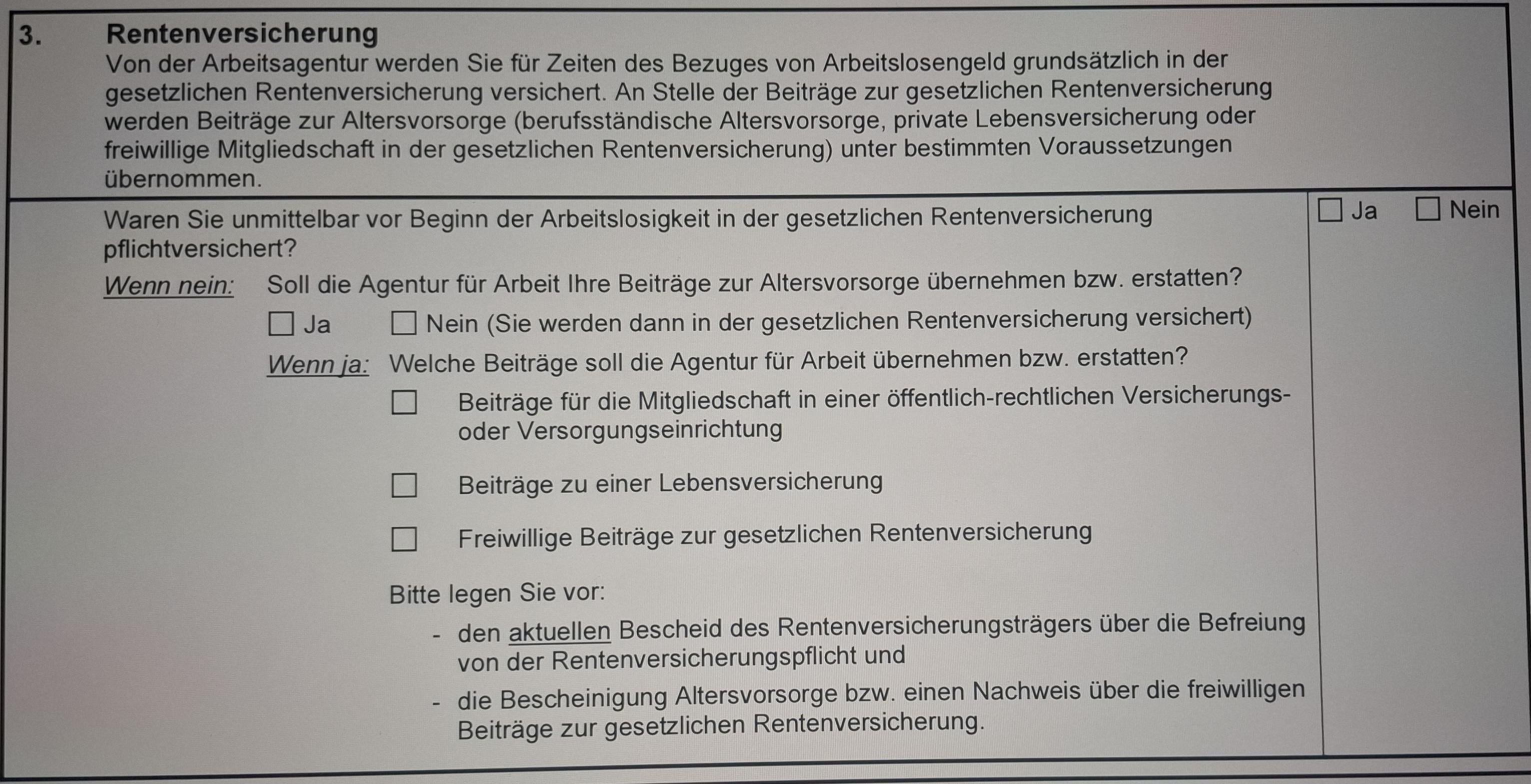 le viene richiesto di compilare questo modulo per Arbeitslosengeld e una domanda in particolare non ci è del tutto chiara.