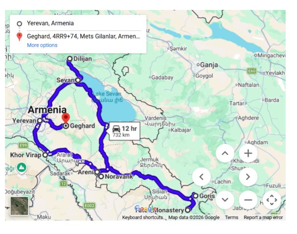 Nella foto qui sotto potete vedere il nostro percorso. Abbiamo già attività, come la funivia più lunga, monasteri, ponte girevole, cottura del pane armeno, degustazione di vini e altro ancora.