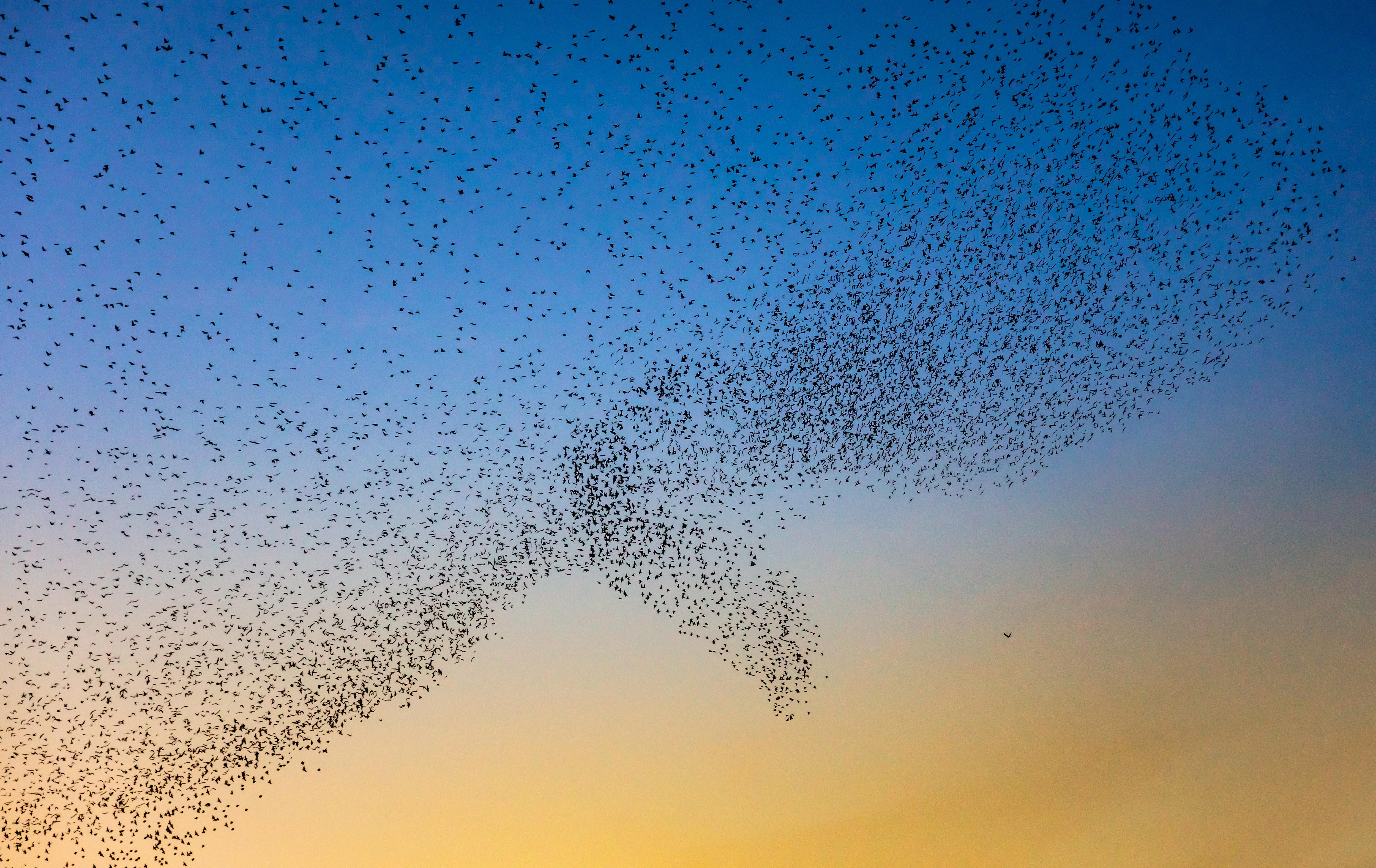 Ho assistito ad un bellissimo mormorio di storno, che formava un grande uccello sullo sfondo di un incredibile tramonto colorato con la bandiera ucraina. https://i.redd.it/8vv9bmph54lg1.jpeg di Mr_BoHingles