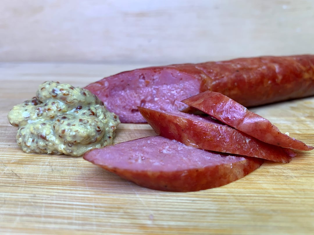 Prima prova a Debreziner. Fondamentalmente una salsiccia affumicata di manzo e maiale condita con paprika dolce e piccante.