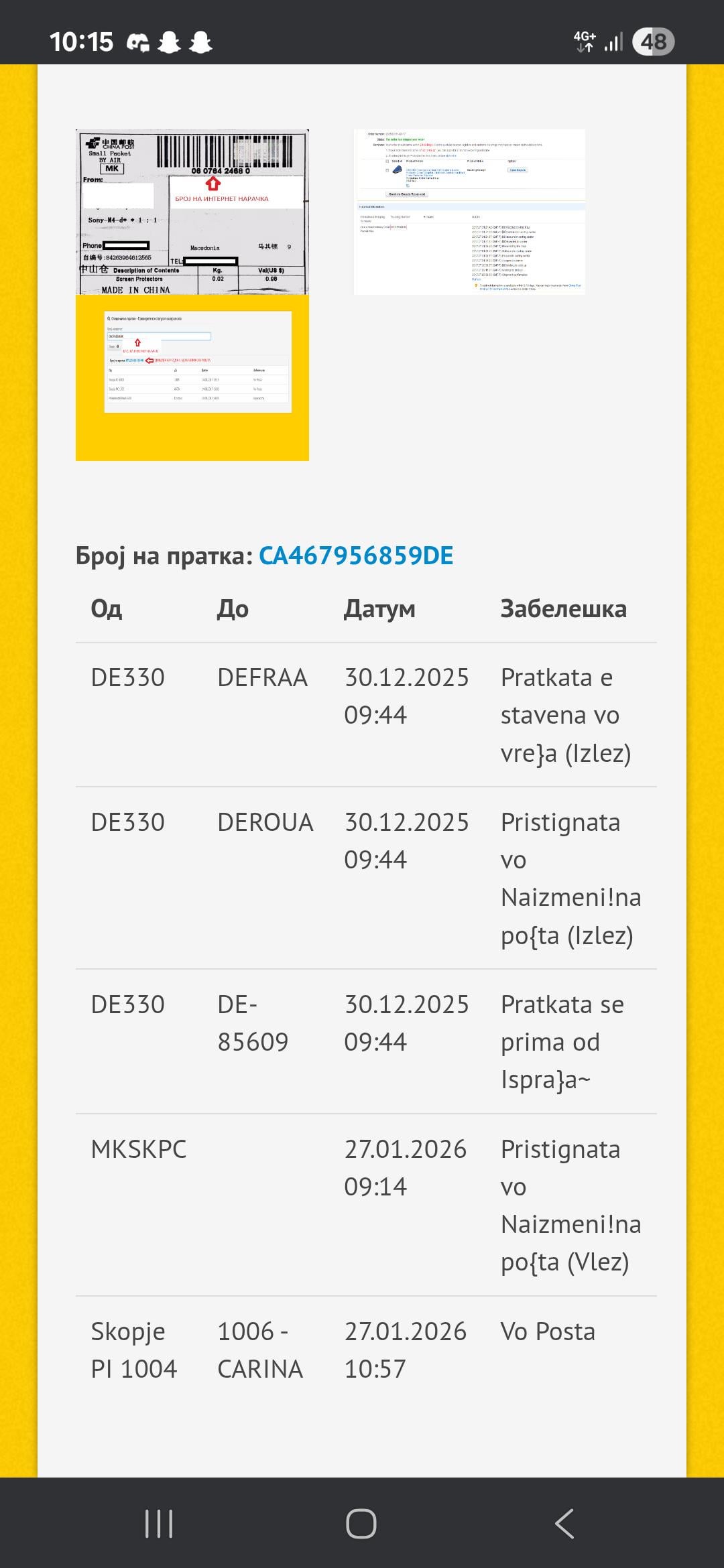 Vekje so godini naracuvam od internet, pratkite znaat vo ovaa faza so meseci da stojat nekoi pratki znaat i za 2 nedeli da stignat a nekogas sum cekal i po 4-5 meseci taka da kje moras da cekas nema sto da pravis…
