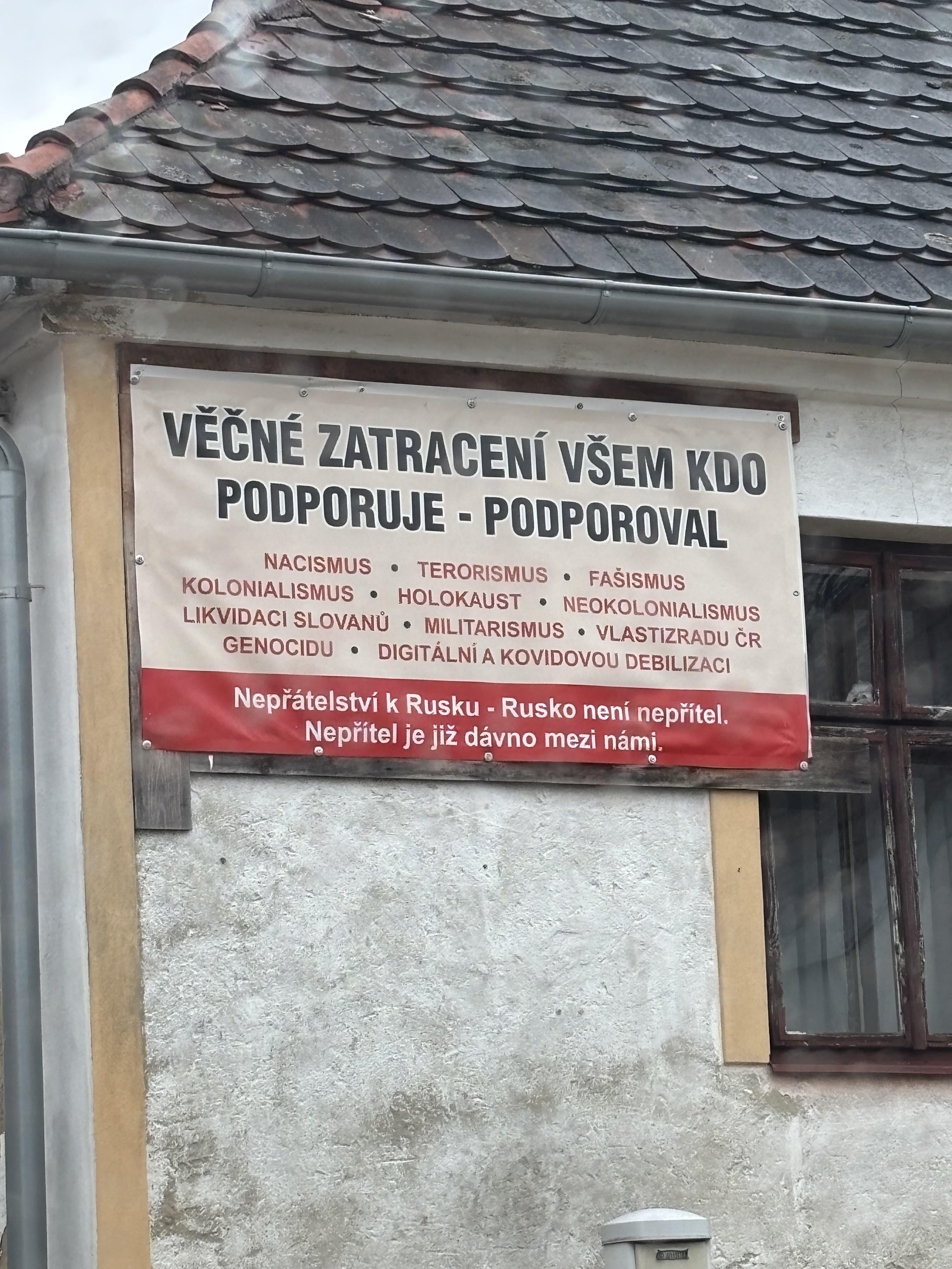 LickableTurnip on 23/02/2026 10:13 Je fascinující, že žijeme ve společnosti, kde se někdo nestydí si tuto smršť protimluvů a otevřené podpory agresora vyvěsit na (asi) vlastní dům.