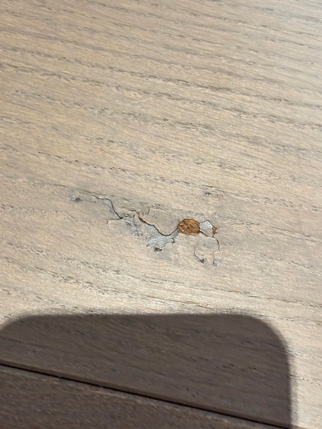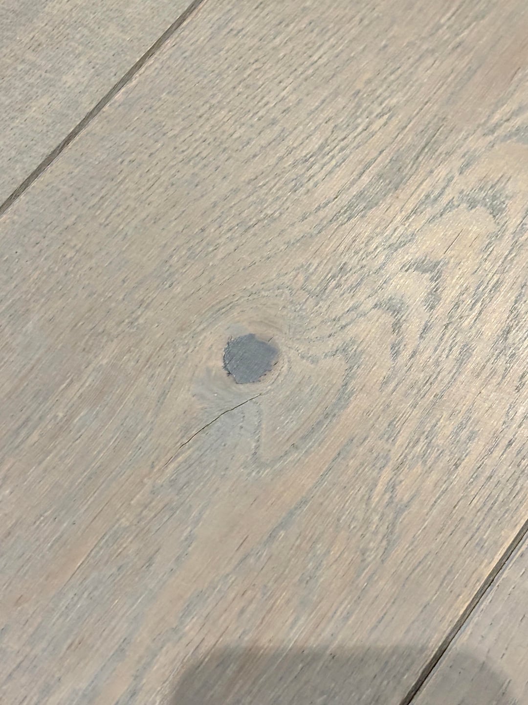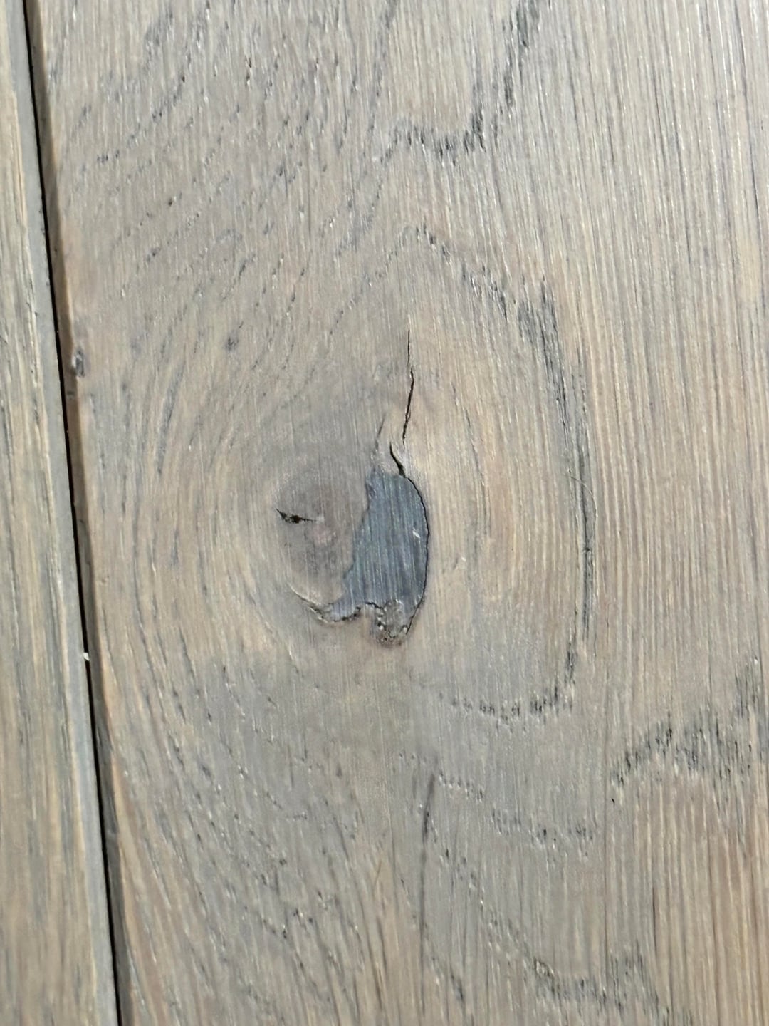 Sembra che le crepe o le cose che fuoriescono dal pavimento siano in realtà delle stuccature e non il legno stesso. La consistenza del materiale è diversa, il colore è molto più scuro e viene fuori nel suo insieme.