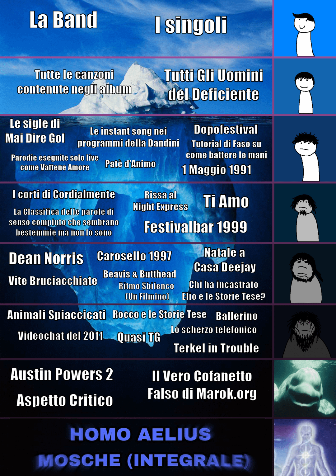 Ciao! Ho realizzato nel corso di febbraio un nuovo Iceberg a tema Elio e le Storie Tese con l’aiuto dell’autore dell’iceberg originale (che vedete nella seconda foto) ovvero "Elio e le Storie Tese Shitposting".