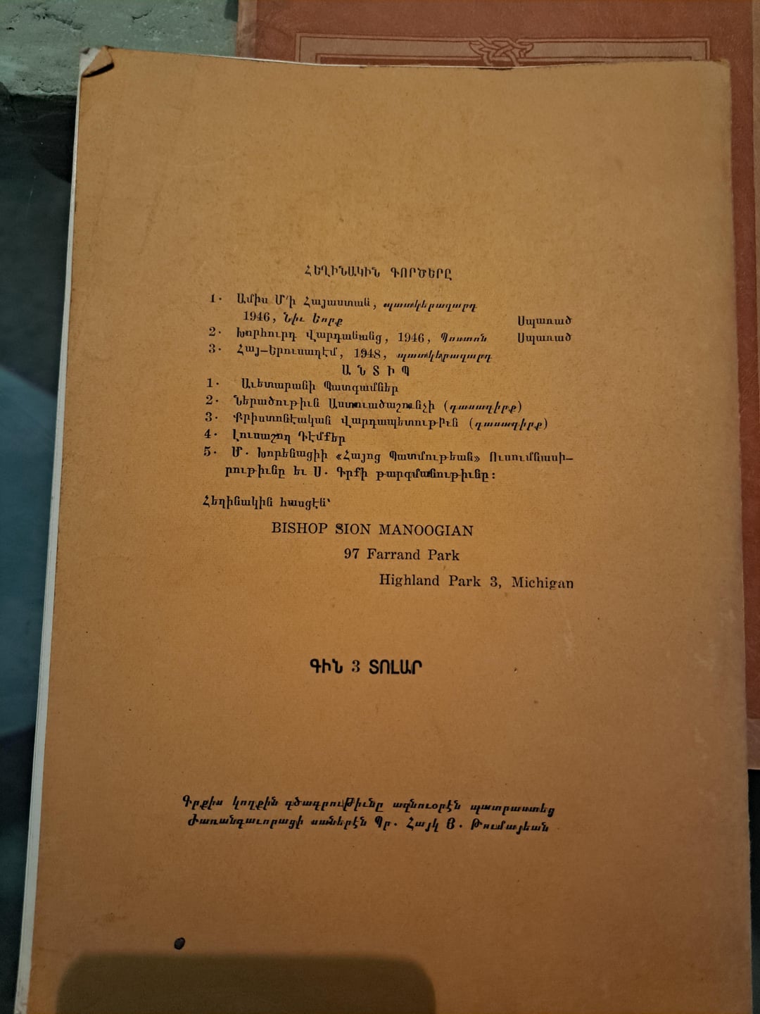 Argishti2700 on 23/02/2026 23:00 Very cool stuff, please maintain them or donate them somewhere. 1, 2. published for 20th anniversary of some Armenian church 3. Is an illustrated book called Armenian Jerusalem, probably about that community. 4. Means Homeland, it is a book of events of that year, basically what happened that year. The rest are back covers, price etc.