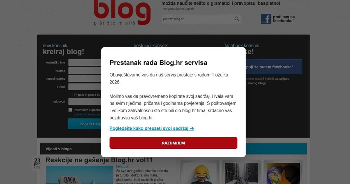 Una parte della storia dell’internet croato se n’è andata per sempre: Blog.hr chiude https://www.bug.hr/internet/dio-povijesti-hrvatskog-interneta-odlazi-u-nepovrat-gasi-se-bloghr-57734 di Anketkraft