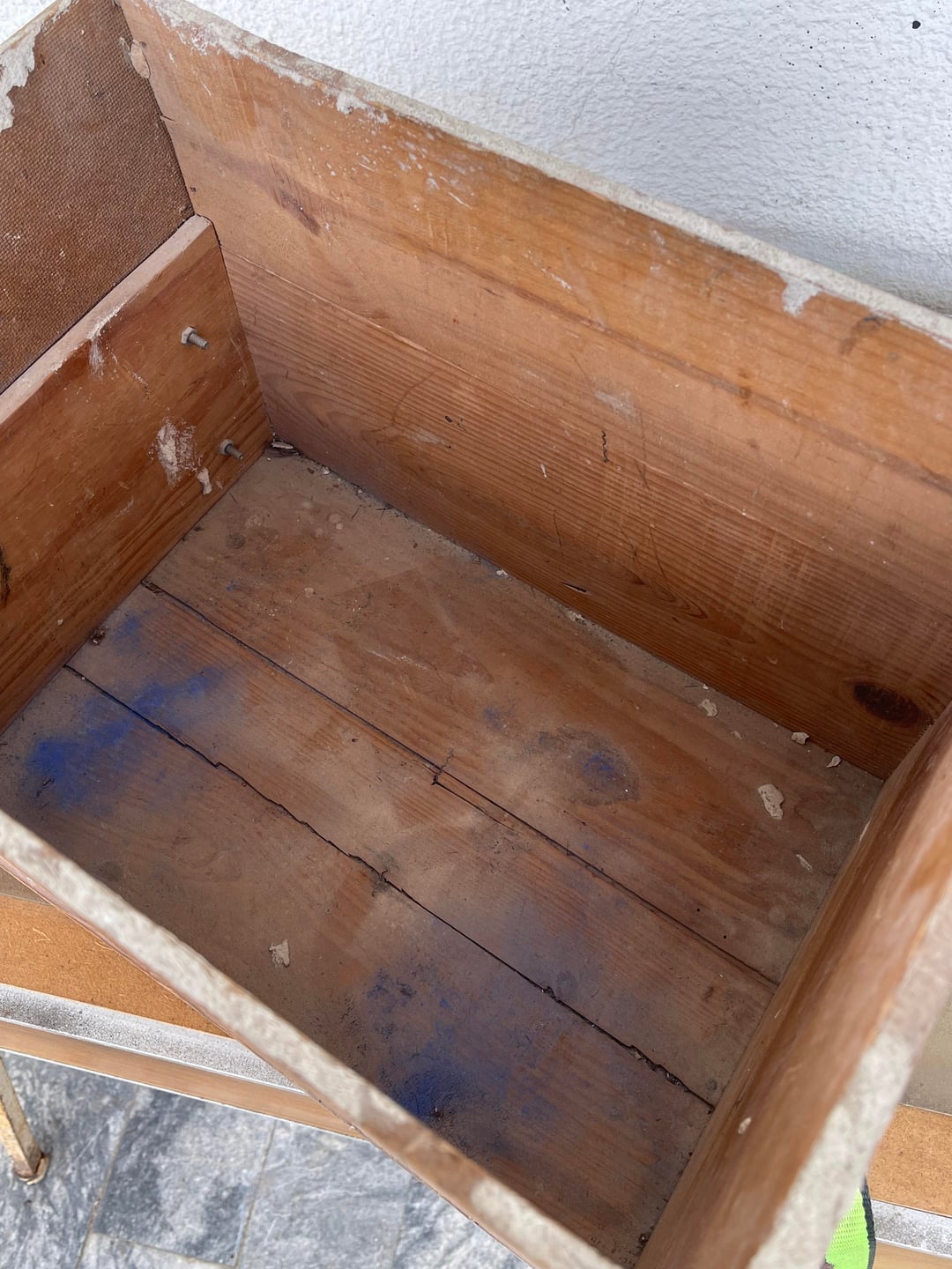 2. Restaurar DYI e usar em casa. Por exemplo, passar uma lixa fina suavemente e aplicar um verniz. Utilizar para guardar mercearia por exemplo, exposta na cozinha. Acho que ficaria fixe.