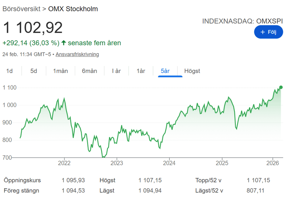 Båda börserna har varit undermåliga. Enligt SCB ligger bara inflation över denna tid på 18%.