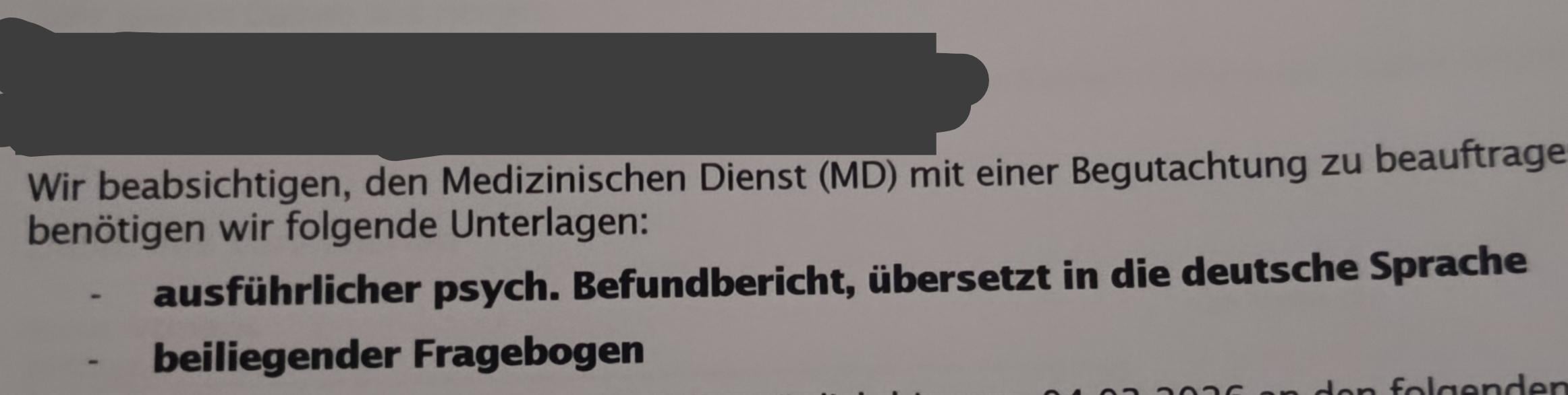 Quindi ho ricevuto questa lettera e ho intenzione di fissare un appuntamento con la mia psicologa (è del mio paese e le visite sono online), ma lei mi ha detto che ha bisogno di sapere se ha bisogno di scrivere il rapporto in un certo modo, ad esempio se ci sono alcune cose e argomenti di cui deve parlare, o può semplicemente fare una valutazione generale sul mio stato psicologico? L’ho cercato, ma non sono riuscito a trovare nessuna informazione a riguardo. Oppure dovrebbe scriverlo la mia Hausartz perché è lei che mi scrive il Krankmeldung?