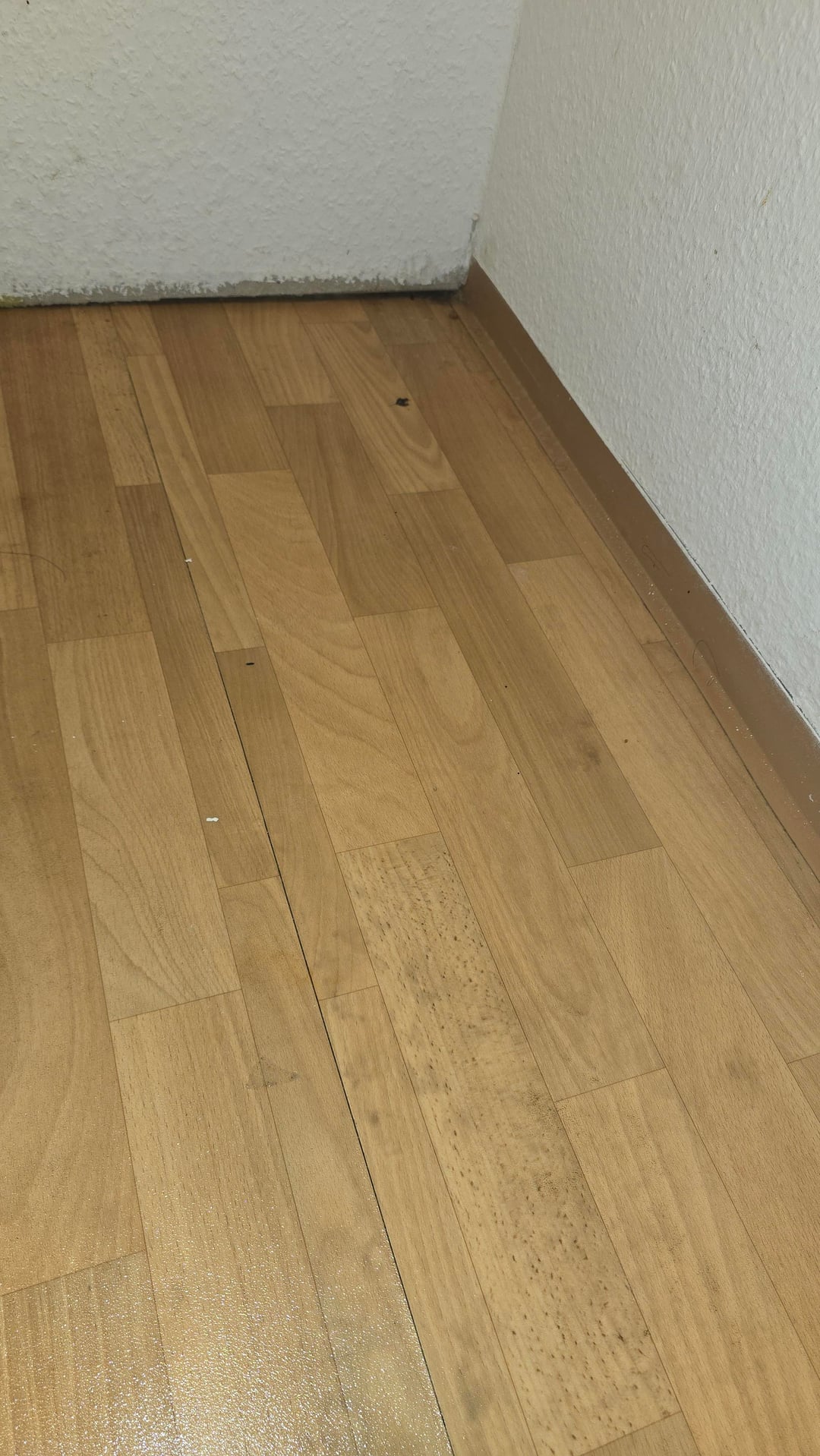 Sto traslocando e ho notato che ci sono macchie di sporco sul pavimento che NON verranno via. Ho lavato, strofinato, usato un detergente base e niente. Non sono enormi, ma sono visibili, e ora sto spiraleggiando.