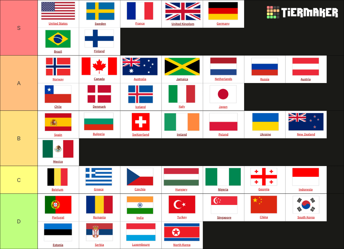 The problem is you have to scale countries to equal size before comparing. Some countries are huge and have a diversity in terms of music, others like tiny Austria are more homogeneous and fewer songs out every year or so.