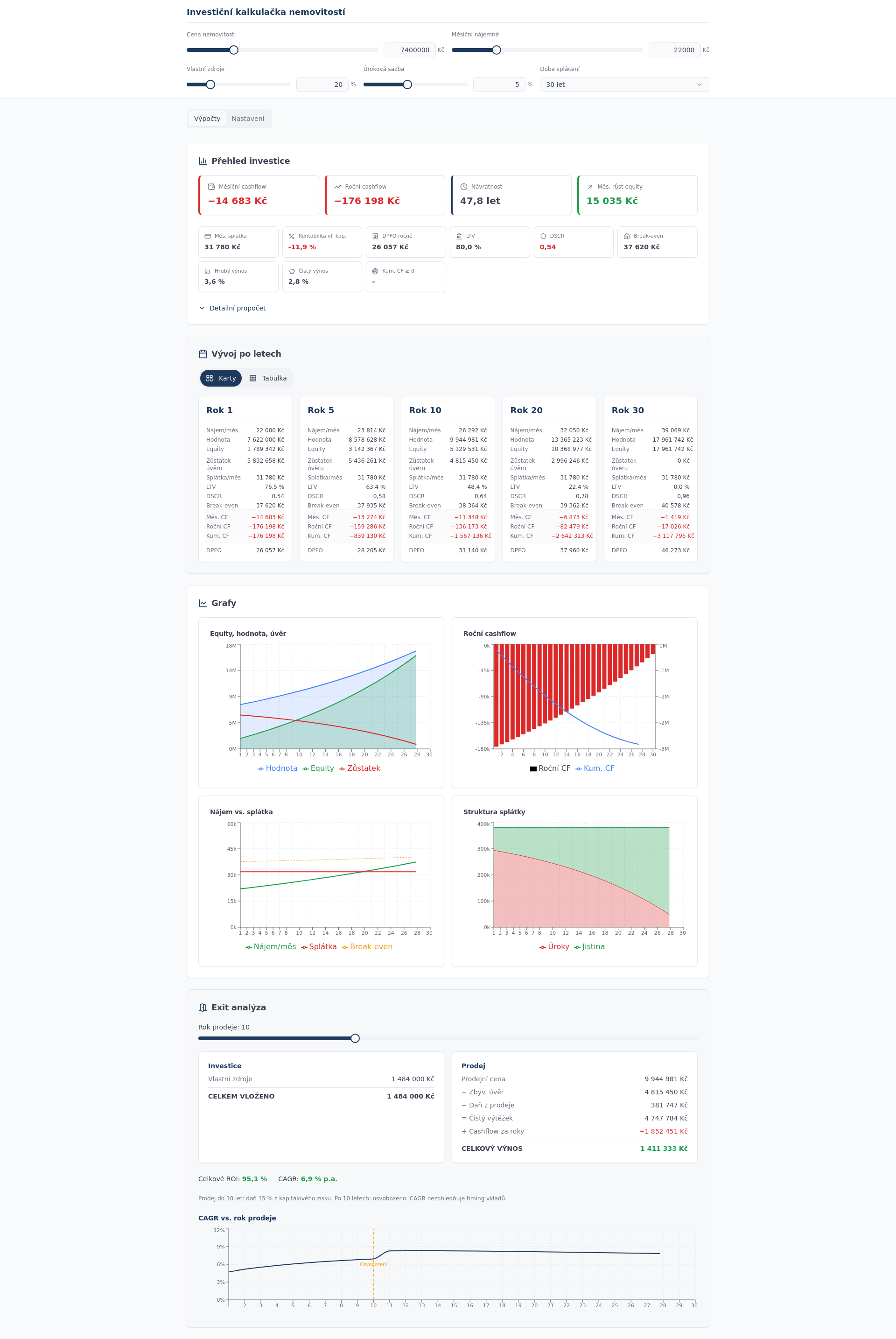 Mohlo by pomoct někomu – konečně pořádná investiční kalkulačka na koupi nemovitosti. Zadáro, bez registrace nebo paywallu. Žádný triky, prostě jen tak.