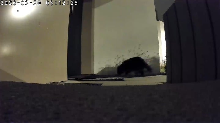 Ma questo mese ho installato una telecamera per controllare i gatti che vengono alla mia porta di casa. Con mia sorpresa, un procione è apparso in due notti separate.
