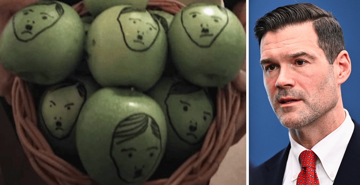 Korgen med äpplen hade ställs utanför migrationsminister Johan Forssells (M) bostad. Där utredde polisen olaga hot.