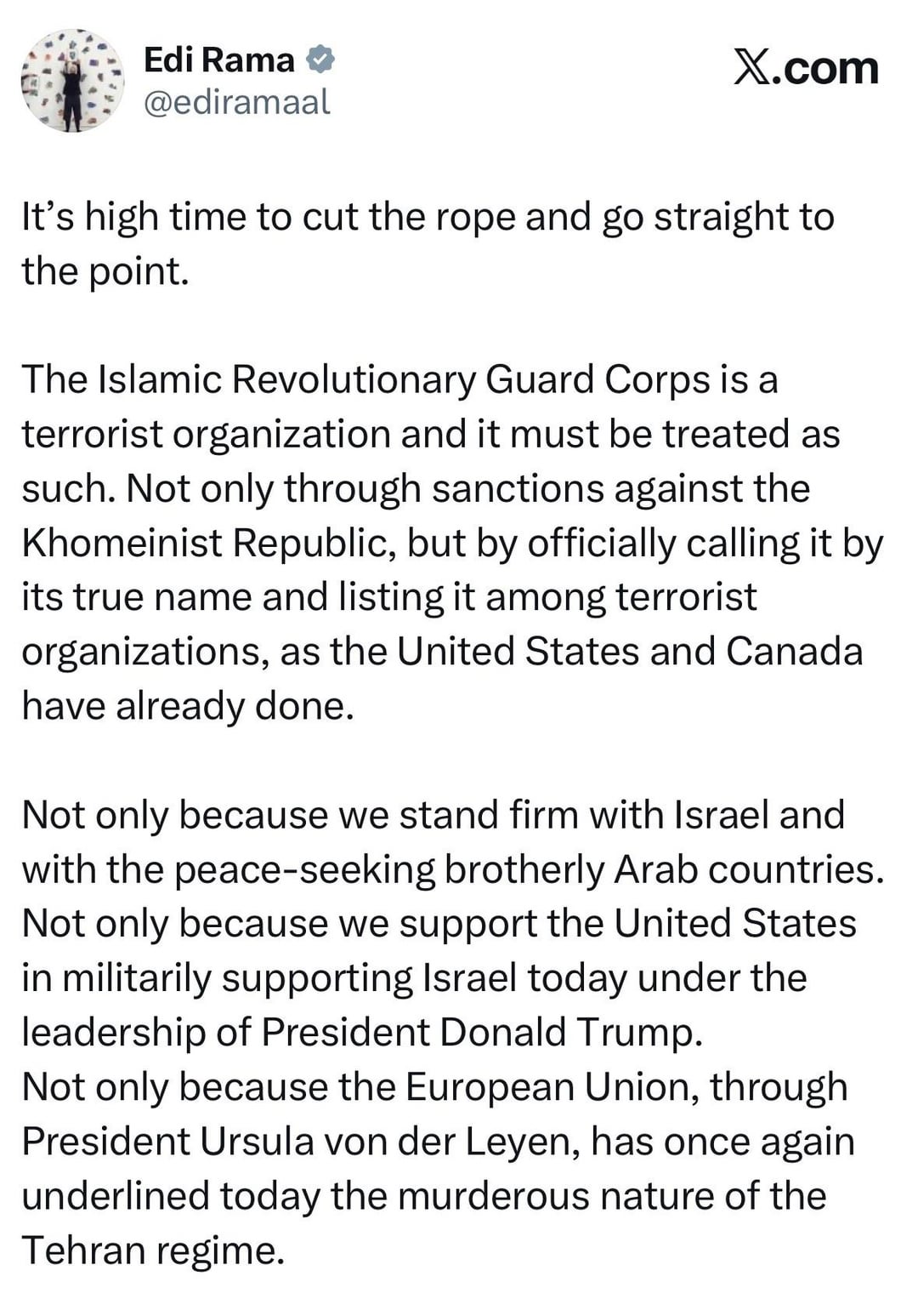 Niente è in bianco e nero, non si può dire che l’Iran sia cattivo, la Palestina cattiva, Israele buono. Uccidere semplicemente degli innocenti è una stronzata da entrambe le parti.