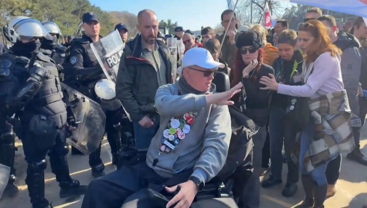 “Pogledajte kako blokader u punoj brzini nalece na kordon mirnih policajaca.”