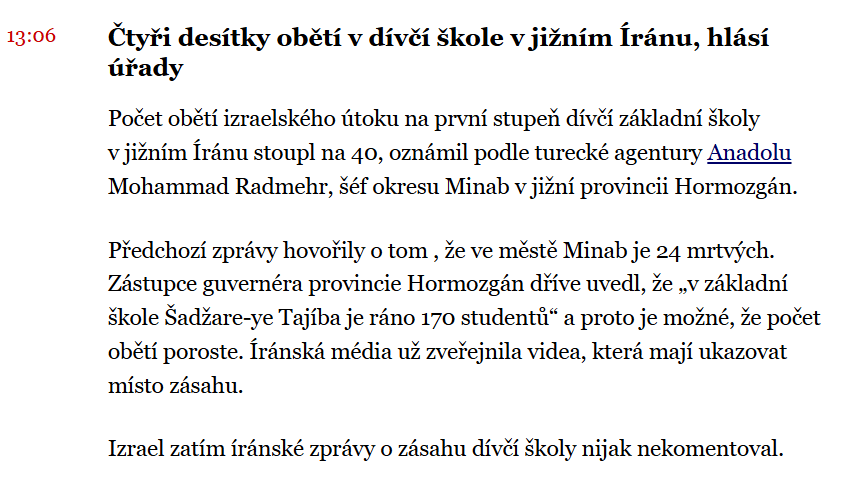 Zprávám o Íránských obětech věřím asi jako těm od Hamásu.