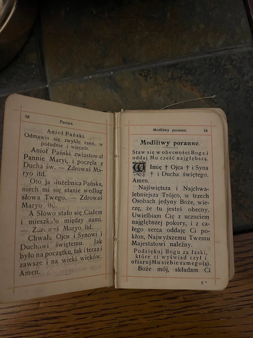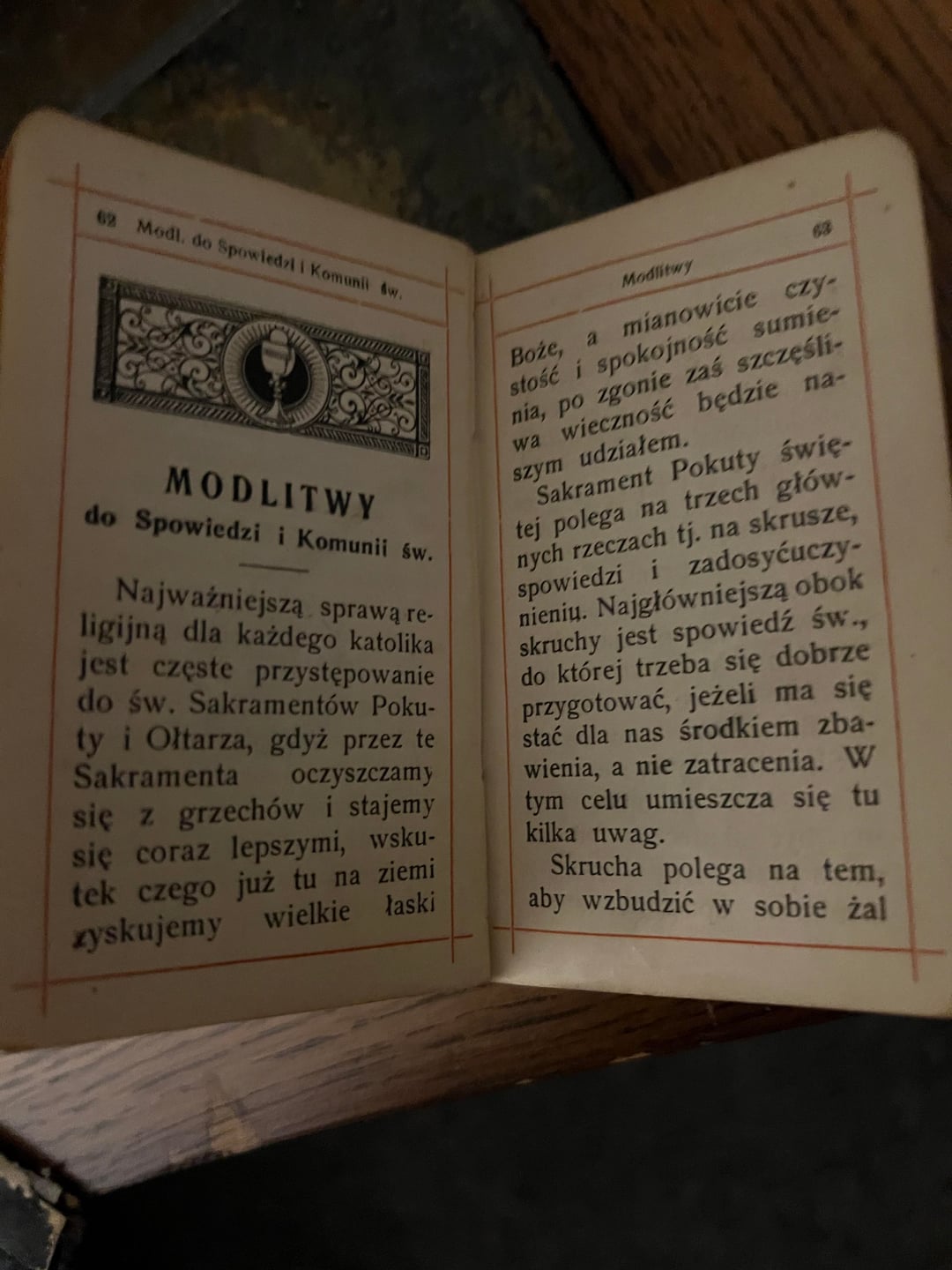 Dzień dobry, ho comprato questo libro cattolico polacco su Ebay qualche mese fa per pochi soldi. Penso solo che sia davvero bello e volevo mostrarlo! Pensare cosa ha passato questo libro! Inoltre, il mio polacco sta diventando abbastanza buono al punto che riesco a leggere e capire molte cose in questo libro.