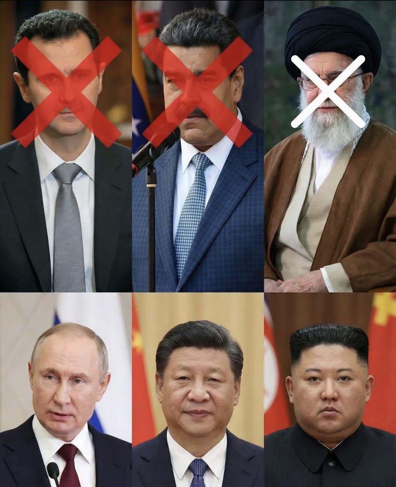 Resp takhle. U těch třech dole je jejich jméno známější, než jméno jejich země. To má Donalda dělá dojem, protože by s USA chtěl udělat taky něco takového. U těch nahoře jsi nejdřív slyšel název země a až pak vzpomínal, kdo tam vládne. Říká se “Putin rozpoutal válku” a “Kim testuje rakety”, ale ne “Chomenei zaútočil na Izrael”. Asad Ani Maduro nebyli autokrati levelu těch dolních …