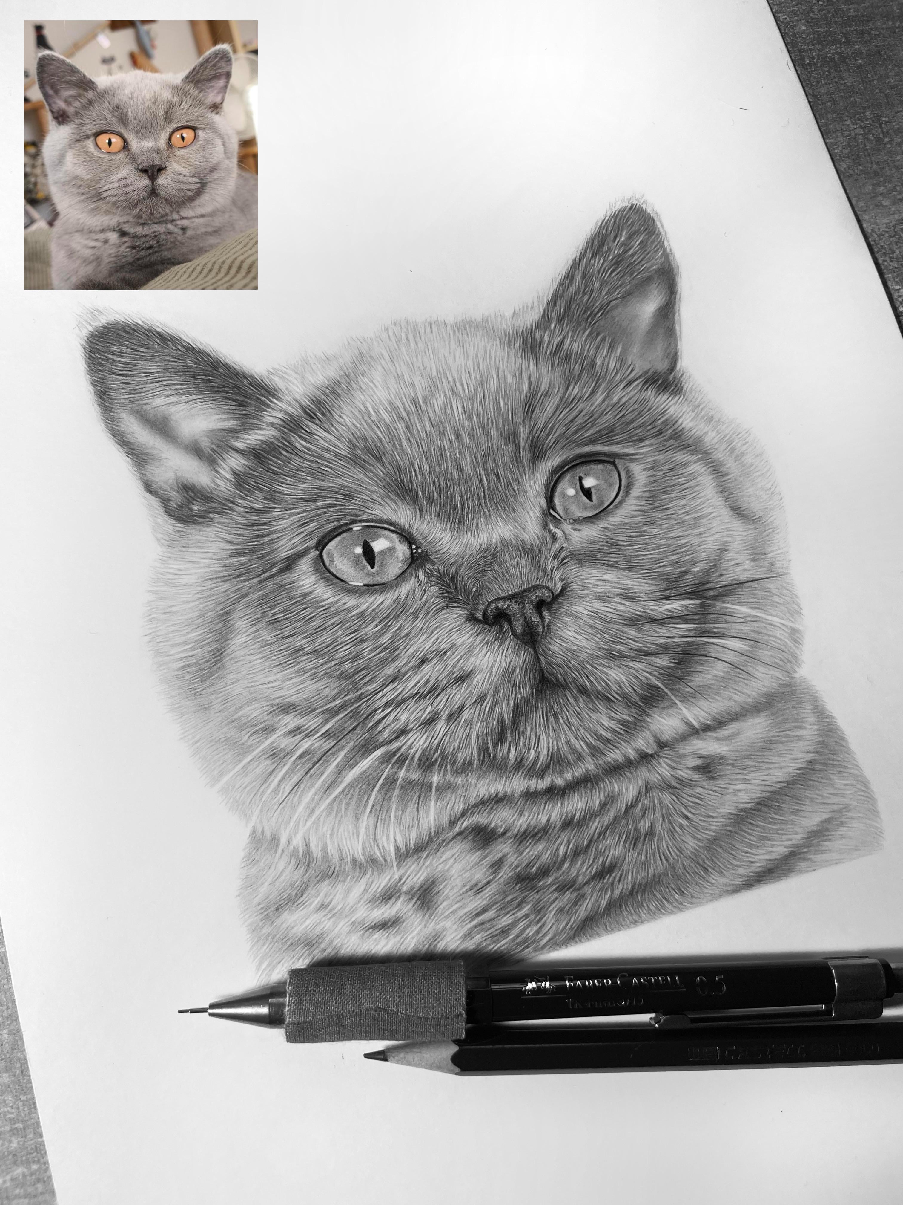 Il mio ritratto di un gatto a matita di grafite secondo la foto, A4 (personalizzato) https://i.redd.it/53facqizrfmg1.jpeg di petrakonecnaportrait