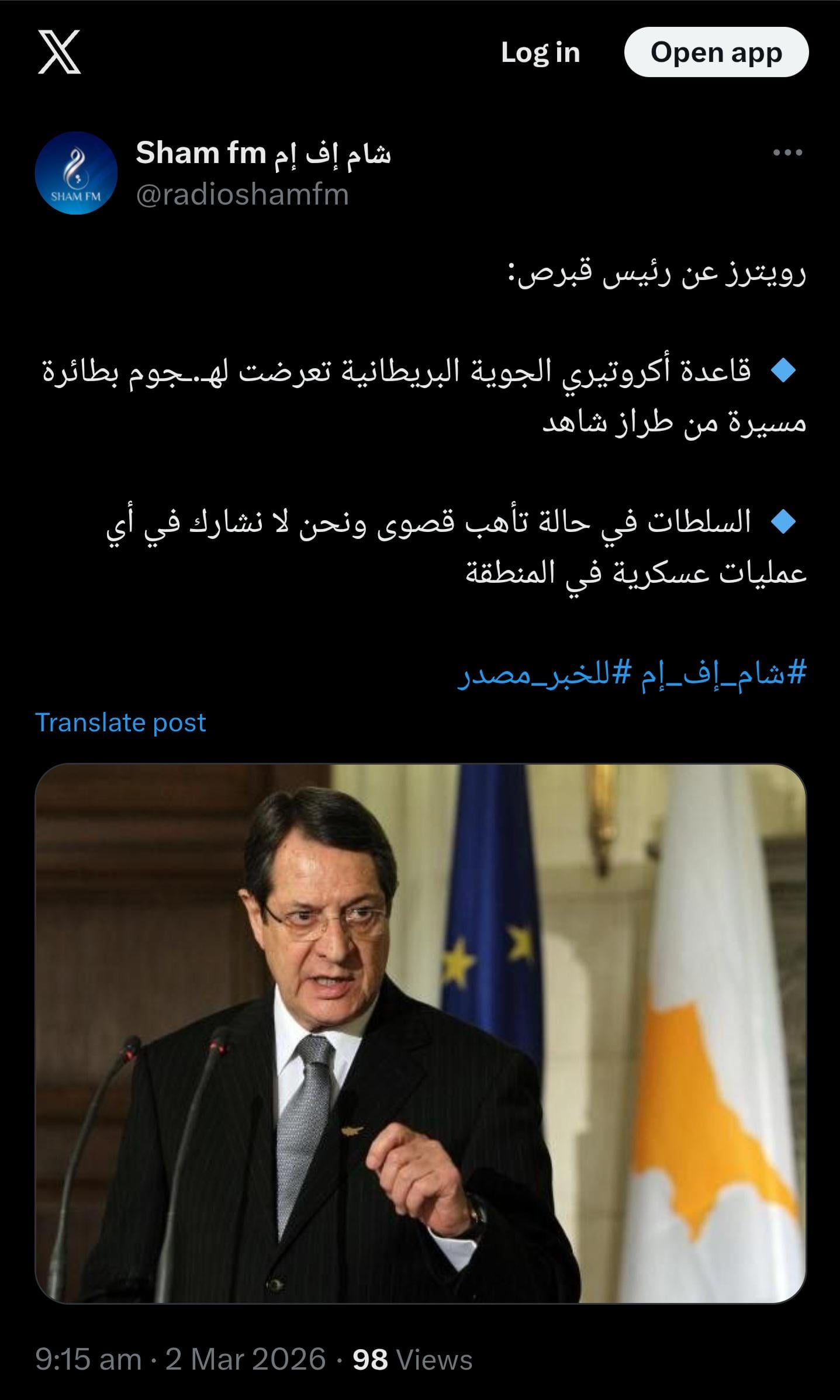 Reuters, citando il presidente cipriota: La base aerea britannica di Akrotiri è stata attaccata da un drone. Le autorità sono in massima allerta e non parteciperemo ad alcuna operazione militare nella regione.