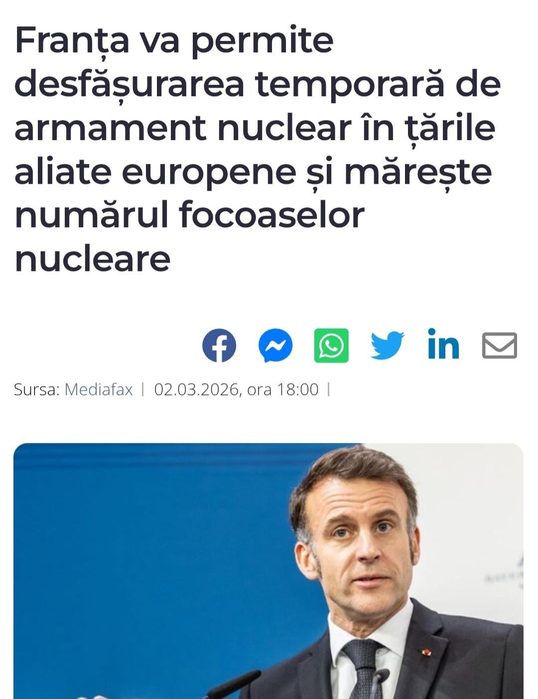 Citește mai mult la: [https://www.digi24.ro/stiri/externe/ue/emmanuel-macron-franta-isi-va-creste-numarul-de-focoase-nucleare-3655831](https://www.digi24.ro/stiri/externe/ue/emmanuel-macron-franta-isi-va-creste-numarul-de-focoase-nucleare-3655831)