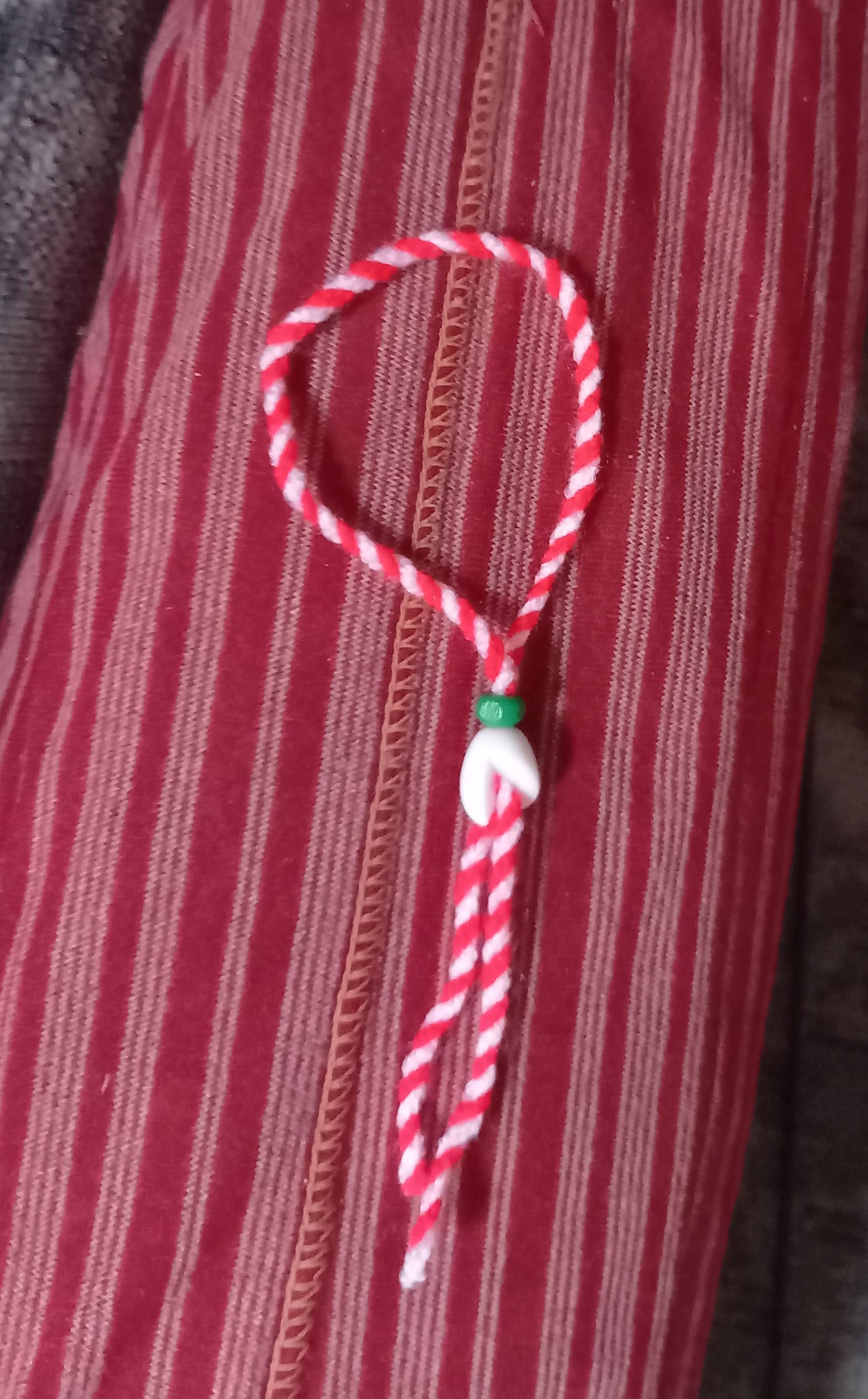 Yes, we give these out to people on the 1st day of March. You can wear it on your wrist for a couple of days, if you want, it’s like a spring good-luck charm. Traditionally, people are supposed to wear them until they see a stork (these birds coming back in March are a sign of spring) and then you either tie it to a blooming tree or put it under a rock.