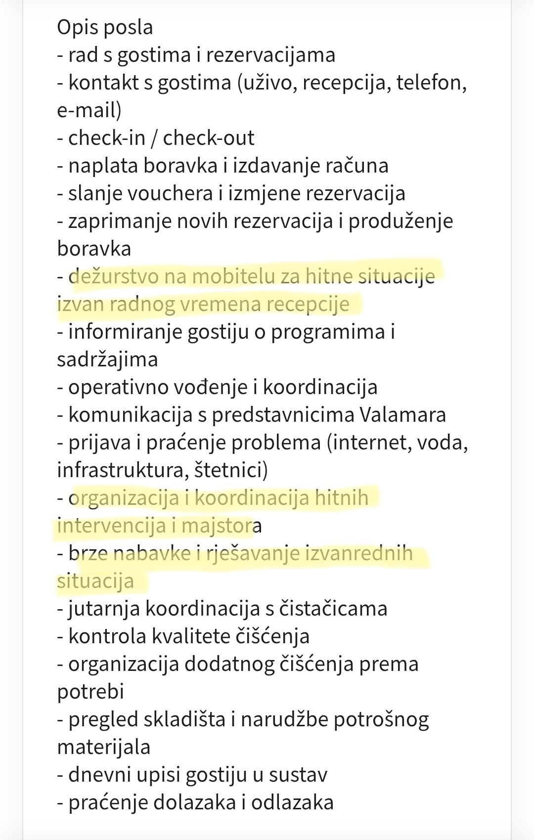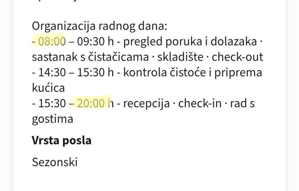 Na kraju ce zaposliti za tu poziciju 2 Neplaca koji im se nece javljati van radnog vremena.