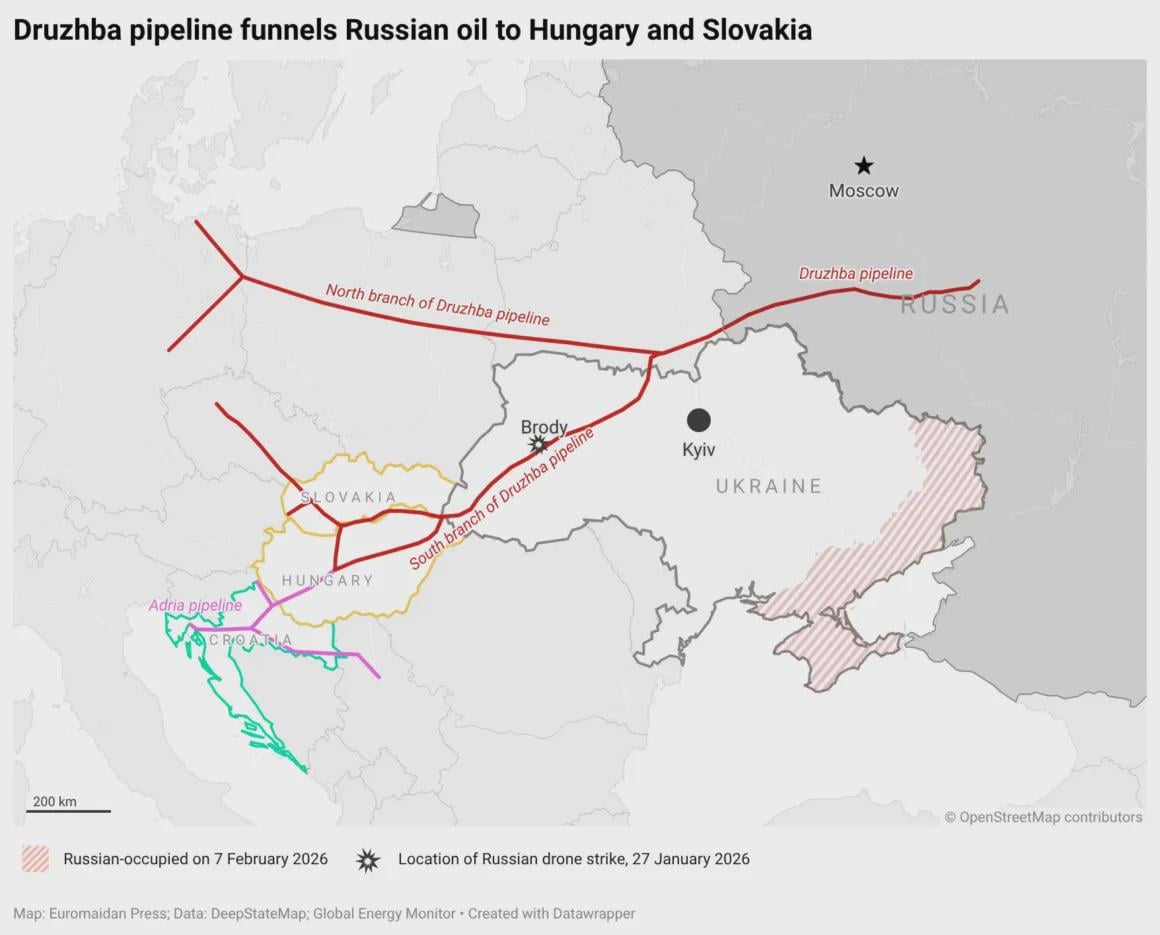 Il 27 gennaio un drone russo ha danneggiato gravemente una sottostazione dell’oleodotto Barátság vicino a Brody. Questo ormai lo sanno tutti. Il fatto che gli ucraini abbiano cercato di fermare immediatamente l’incendio che si propagava nell’oleodotto, la diminuzione della pressione, che avrebbe continuato a risucchiare l’incendio nella tubazione, è stata risolta fornendo il proprio petrolio (35mila tonnellate). Tutto ciò è stato accettato da parte ungherese dopo la notifica alla MOL. Hernádi lo ha confermato. Tuttavia, ulteriori interventi di bonifica non hanno avuto successo perché un altro attacco russo ha colpito la stazione di pompaggio, gli ucraini che vi lavoravano sono rimasti feriti e l’unità restaurata ha subito un altro grave danno, questa volta i pannelli di controllo e la rete di condutture sotterranee erano in condizioni critiche. La parte ucraina non è disposta a rischiare altre vite umane, è evidente che vincolano una settimana di cessate il fuoco per poter effettuare i lavori di riparazione. L’UE ha ridotto la propria esposizione al petrolio russo dal 27% all’1%, l’Ungheria l’ha aumentata dal 61% al 91% grazie a Orbán. Tutto questo dall’inizio dell’invasione russa, ovvero dalla fine di febbraio 2022.