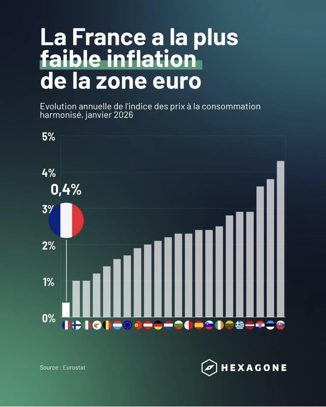 Oui parce que la France a une part importante de service dans son économie. Elle est donc moins sensible à l’envolée des couts des matières premières et de l’energie.