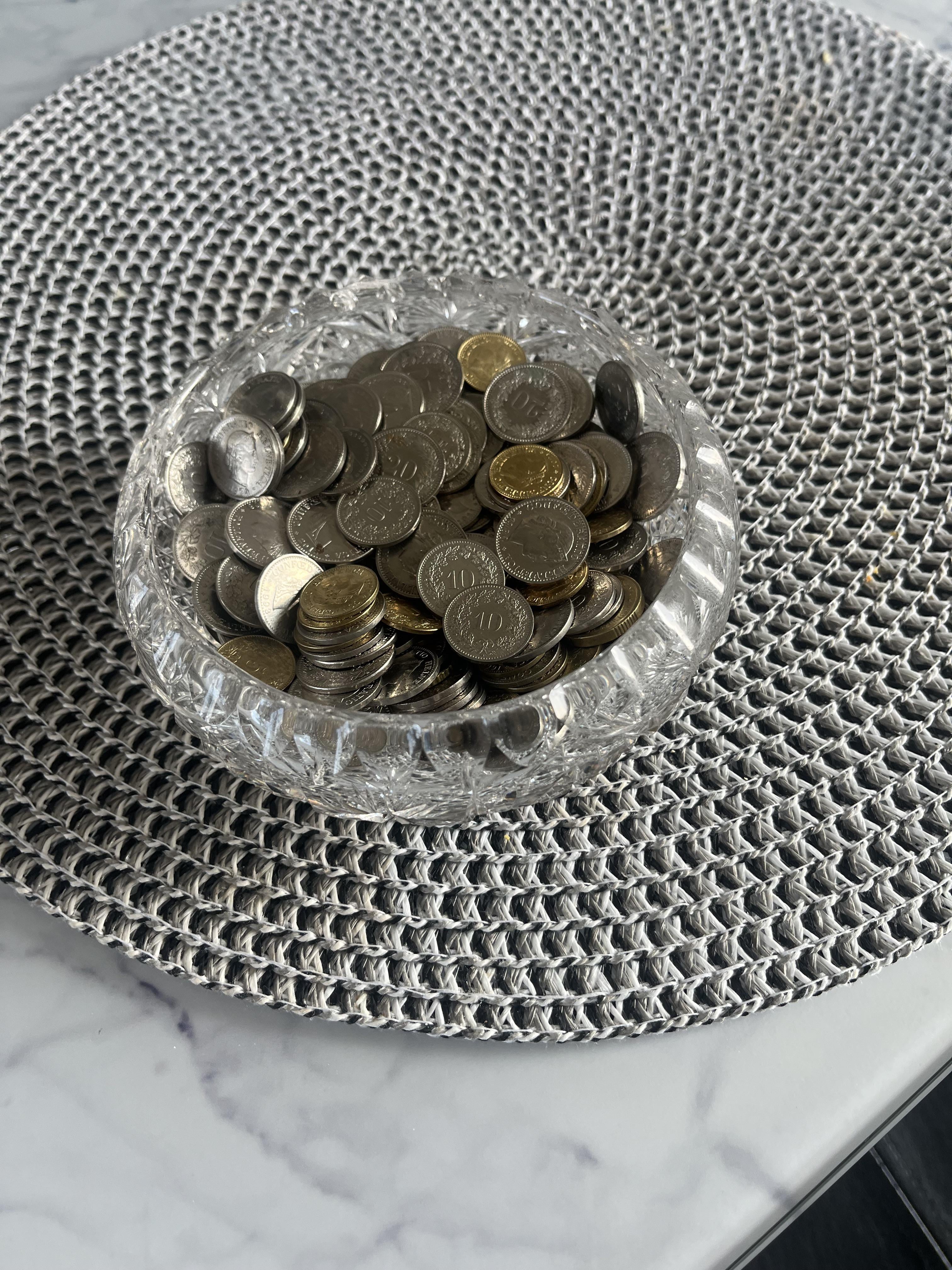 most of them are Rappen! you could use it to buy stuff at vending machines for criminally inflated prices, you could dump them in a machine at the bank and get the total added to your account but you’ll have to remove the non-swiss currencies first.